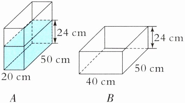 $20×50×24÷[(20+40)×50]=8(cm)$易错警醒 不管怎么倒水,水的体积不变。可以将两个鱼缸并排放在一起,看成是一个底面长是60 cm、宽是50 cm的长方体。