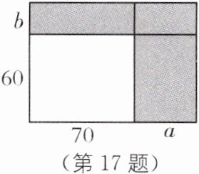 17. 我校的操场是一个长70m、宽60m的长方形,要将它扩建成一个较大的长方形的操场,使长增加a m,宽增加b m,则面积增加____$m^{2}$.