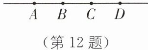 12. 如图,在一条直线上有$A$,$B$,$C$,$D$四点,则图中共有______条线段,______条射线.