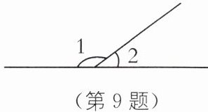 9. 如图,$\angle 1>\angle 2$,$\angle 2$与$\frac{1}{2}(\angle 1-\angle 2)$之间的关系是().