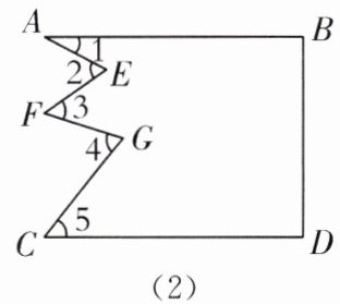 (2)中过点E,F,G分别作AB的平行线,同理可得∠1+∠3+∠5=∠2+∠4,在图