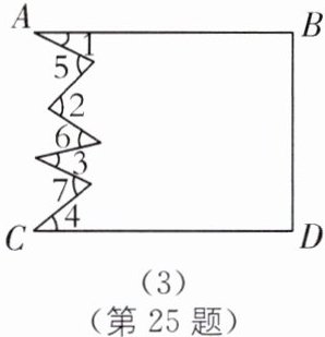 (3)中,同样可得∠1+∠2+∠3+∠4=∠5+∠6+∠7.