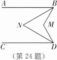 24. 如图,$AB// CD$,BN,DN分别平分$∠ABM$,$∠MDC$,试问:$∠BMD$,$∠N$之间的数量关系如何?并说明理由。