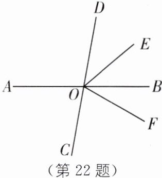 22. 如图,已知直线AB,CD相交于点O,OE平分$∠BOD$,OF平分$∠COE$。若$∠AOD= 100^{\circ }$,求: