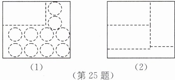 25. 新情境 定制客机模型礼盒 某工厂现需为 C919 客机模型制作一款定制礼盒,工作人员准备按照以下两种裁剪方式制作,已知 1 个长方形和 2 个圆可以组装成 1 个礼盒,现有 210 张纸板,其中 $ a $ 张纸板用图(1)的方式裁剪,剩余纸板用图(2)的方式裁剪.
