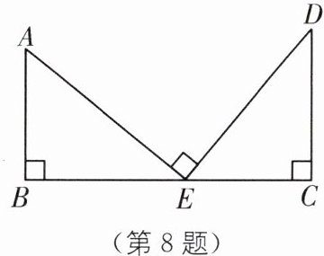 8. 新情境 构建“一线三等角”全等模型 如图,两座建筑物$AB$,$CD$相距$160\mathrm{m}$,小月从点$B$沿$BC$走向点$C$,行走$t\mathrm{s}$后她到达点$E$,此时她仰望两座建筑物的顶点$A$和$D$,两条视线的夹角正好为$90^{\circ}$,且$EA= ED$.已知建筑物$AB$的高为$60\mathrm{m}$,小月行走的速度为$1\mathrm{m}/\mathrm{s}$,则小月行走的时间$t$的值为().