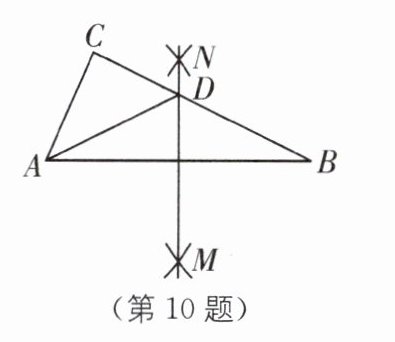 10. 如图,在△ABC中,分别以点A和点B为圆心,大于$\frac{1}{2}AB$的长为半径画弧,两弧相交于点M,N,作直线MN,交BC于点D,连结AD. 若△ADC的周长为10,AB=7,则△ABC的周长为( ).
