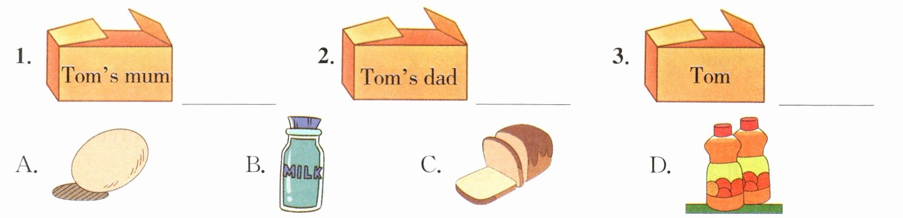 Tom: Yes. My mum would like some eggs and milk. My dad would like some bread and eggs.