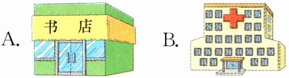 二、新情境 问路 Tom 在外地旅游,身体不适需要就医,他在向当地人询问医院的位置。阅读对话,选择正确的图片。