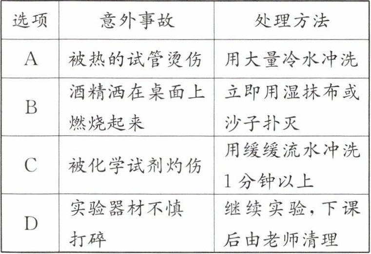 14. 科学实验过程中要规范操作,注意实验安全,如果发生意外也要冷静处理。下列意外事故处理方法错误的是()。