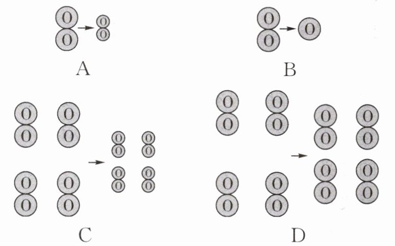 D [解析]瓶子里的氧气温度降低后,分子间距离变小,分子大小不变,故选D。