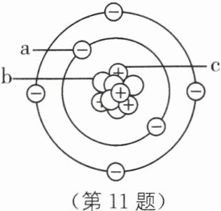11. 如图为碳原子的结构模型图,其中a、b、c是该碳原子内的三种不同粒子,下列说法不正确的是()。