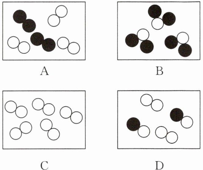12. 下图是表示气体分子的示意图,图中“○”“●”分别表示两种不同质子数的原子,其中表示化合物的是()。