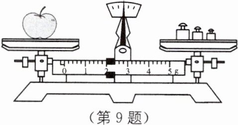 9. 如图所示,小华正在用托盘天平测量苹果的质量,如果所使用的一个砝码不小心粘上了一点杂质,在不知道的情况下测出苹果的质量为162g,则该苹果的真实质量应该()。