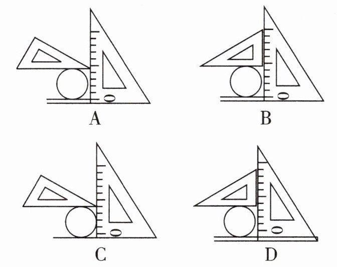 7. 下列利用三角板测量金属圆柱体直径的几种测法中,正确的是()。