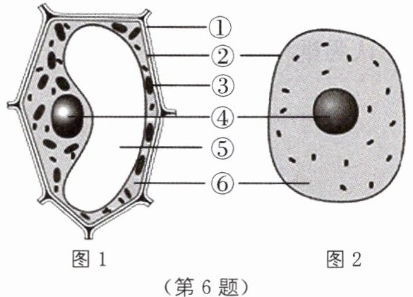 6. 如图1、2分别是植物细胞和动物细胞的结构模式图,下列叙述错误的是()。