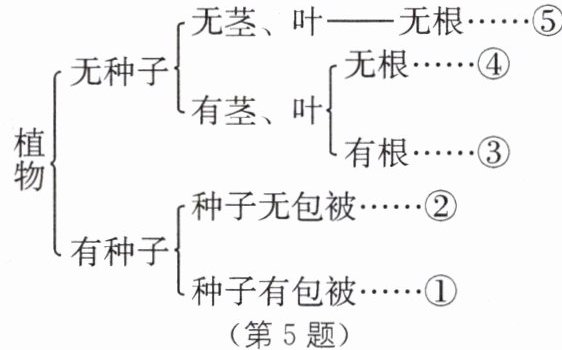 5. 某学校校园中,有柑橘、水绵、葫芦藓和雪松等植物。科学兴趣小组的同学根据这些植物的特点,按如图的标准进行分类。其中②是()。