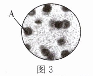 C. 若要进一步观察图丙中微藻A的内部结构,应立即转动图甲中结构③,并微调①