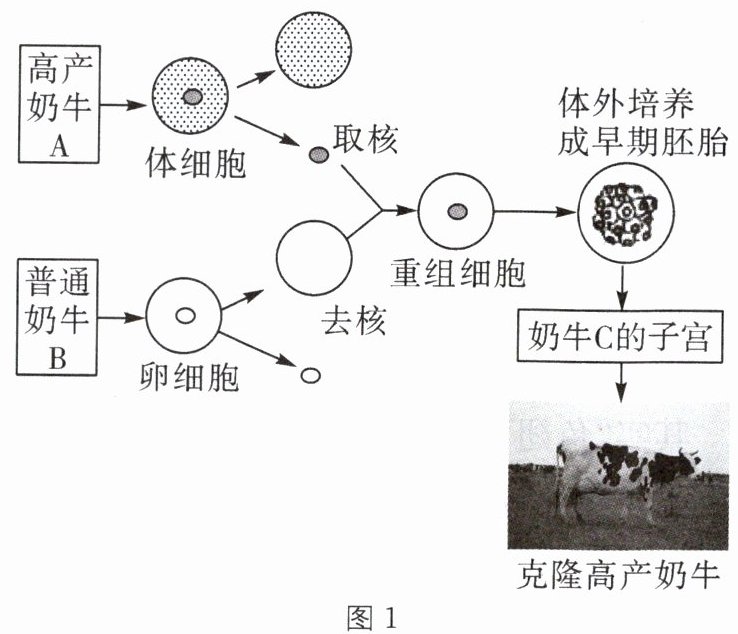 (1)据图1可知,培育克隆奶牛的生殖方式和胚胎发育方式分别属于()。