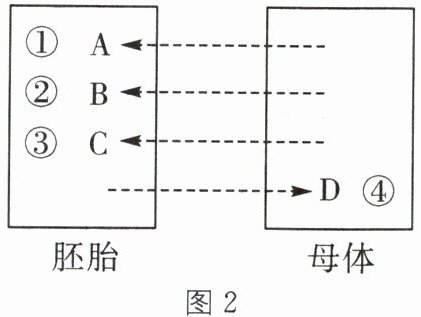 (2)用图2模型可表示奶牛C子宫与胚胎进行的物质交换,其中④可代表的物质是()。