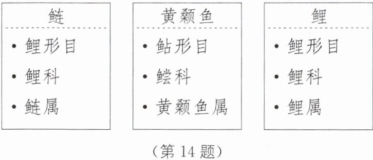 14. 教材P79练习与应用T1·拓展 为宣传保护某水库的生物多样性,某兴趣小组制作了一些鱼类的物种信息卡。下列叙述错误的是()。