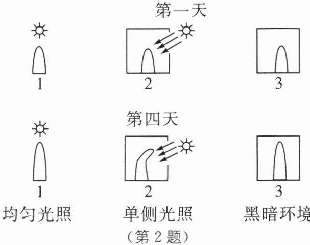 2. 为研究光照对植物胚芽生长的影响,某兴趣小组做了如图所示的实验。根据图中所示实验结果可以得出的结论是()。