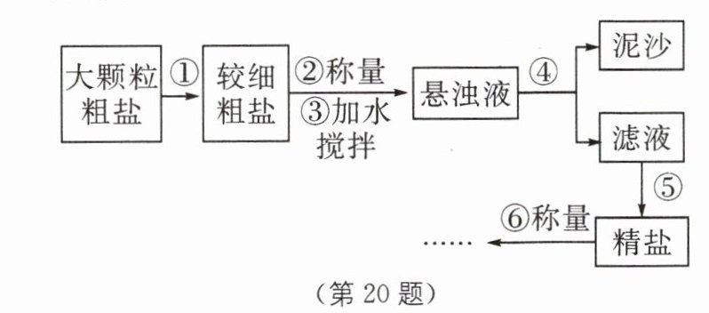 20. 氯化钠是生活必需品,也是重要的化工原料。提纯含少量泥沙的粗盐,一般经过以下操作流程: