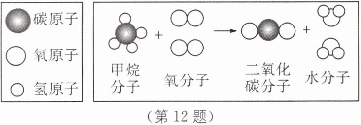 12. 如图所示是甲烷与氧气反应的微观示意图。请通过比较、归纳,回答下列问题。