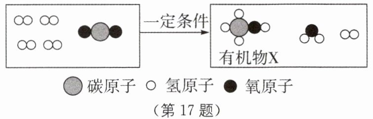 17. 我国科学家在世界上首次实现利用二氧化碳人工合成淀粉$[(C_{5}H_{10}O_{5})_{n}]$,如图所示为人工合成淀粉过程中第一步反应的微观示意图。