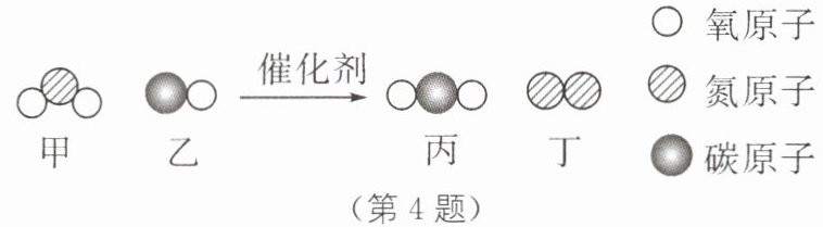 4. “三效催化转换器”可将汽车尾气中的有毒气体转化为无污染的气体,其中某个反应的微观示意图如图所示。从图示获得的下列信息中错误的是()。