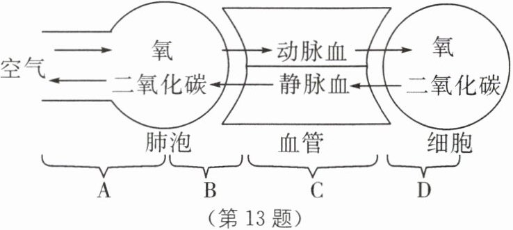 13. 下图为呼吸过程示意图,请据图回答下列问题。