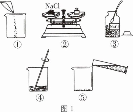 20. 某科学实验小组的同学要配制100g质量分数为10%的氯化钠溶液,如图1所示是他们配制溶液的实验操作示意图。