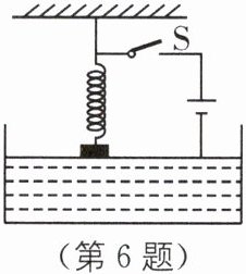 6. 如图所示,一个轻质弹簧下端悬挂一个小铁片,当开关S断开时,铁片刚好与水银槽中水银接触。当开关S闭合后,铁片会()。