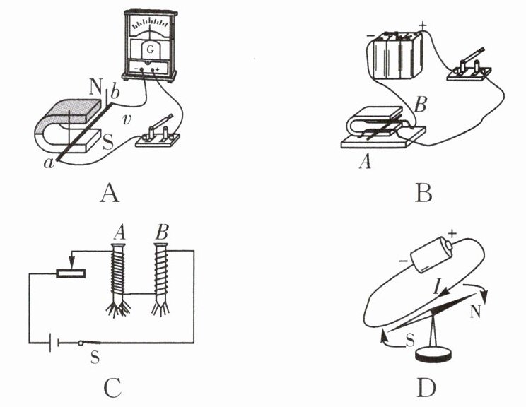 3. 新情境 能量回收系统的原理 纯电动汽车刹车时,汽车电动机“变身”为发电机,将汽车机械能转化为电能,简称能量回收系统。下列实验中与能量回收系统原理相同的是()。