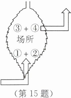 15. 如图所示是某植物的生理活动示意图,其中①②表示原料,③④表示产物,箭头表示物质进出的方向。据图回答问题。