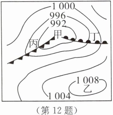 (2)丁地附近活动的锋面是____锋,该锋面在丁地过境后,丁地的气温将____。