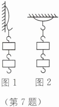 7. 塑料吸盘是家庭常用的小工具,小明做了如图所示的实验,在实验中吸盘都保持静止,但所挂钩码已是吸盘所能提起的最大重物,下列说法中你认为正确的是()。