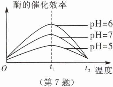 7. 酶是生物催化剂,生物体内含有各种各样的催化酶。如图所示为人体内某种酶在不同pH条件下,其催化效率与温度之间的关系。下列有关分析正确的是()。