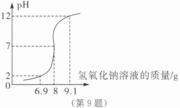 9. 小明在老师的指导下测一瓶稀盐酸的溶质质量分数,具体步骤如下:
