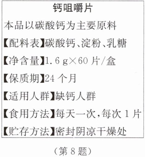 8. 如图所示是某保健品标签的部分内容,请仔细阅读后回答下列问题。