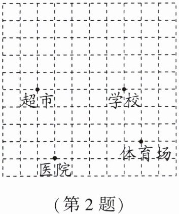 2. (金华中考)如图是城市某区域的示意图,建立平面直角坐标系后,学校和体育场的坐标分别是$(3,1),(4,-2)$,下列各地点中,离原点最近的是 ()