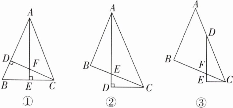 如图①,在$\triangle ABC$中,AE平分$∠BAC,AD= DC,CD⊥AB,AE⊥BC$,垂足分别为D,E,CD与AE交于点F.