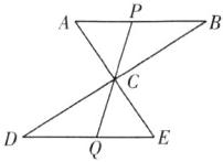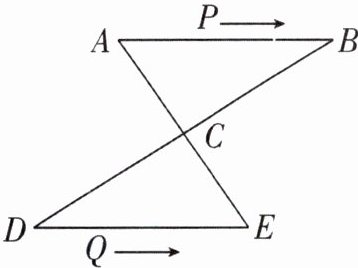 4. (2024·镇江期中)如图,AE与BD相交于点C,$AC= EC,BC= DC,AB= 4cm$,点P从点A出发,沿$A→B→A$方向以3 cm/s的速度运动,点Q从点D出发,沿$D→E$方向以1 cm/s的速度运动,P,Q两点同时出发.当点P到达点A时,P,Q两点同时停止运动.设点P的运动时间为$t(s).$