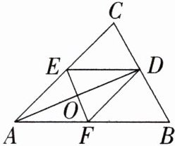 6. 如图,$AD是∠CAB$的平分线,$DE// AB,DF// AC,EF交AD于点O$,请问: