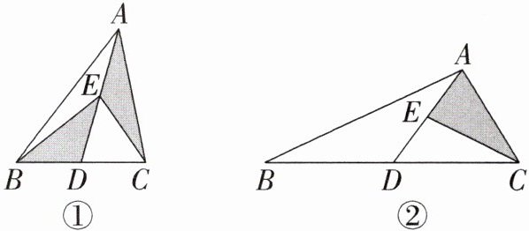 (2)如图②,若点$D,E分别是BC,AD$的中点,且$\triangle ABC$的面积为8,则阴影部分的面积是____.