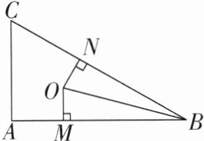 4. (株洲中考)如图所示,点O在一块直角三角板ABC上(其中∠ABC= 30°),OM⊥AB于点M,ON⊥BC于点N,若OM= ON,则∠ABO= ______°.