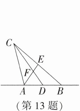 13. 新考法 如图所示,点$C为直线AB$外一动点,$AB= 6$,连接$CA,CB$,点$D,E分别是AB,BC$的中点,连接$AE,CD交于点F$,当四边形$BEFD$的面积为5时,线段$AC$长度的最小值为____.