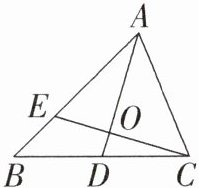 10. 如图所示,在$\triangle ABC$中,$BD= CD,AE= 2BE$,连接$AD,CE相交于点O$,若$\triangle ABC$的面积为24,则$\triangle AOE与\triangle COD$的面积之差