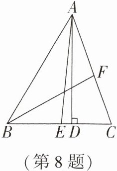 8. 如图,在$\triangle ABC$中,$AD是BC$边上的高,$AE,BF分别是∠BAC,∠ABC$的平分线,$∠BAC= 50^{\circ },∠ABC= 60^{\circ }$,则$∠EAD+∠ABF= $ ()