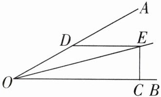 6. (鄂尔多斯中考改编)如图,$∠AOE= 15^{\circ }$,OE平分$∠AOB,DE// OB$交OA于点D,$EC⊥OB$,垂足为C.若$EC= 2$,则OD的长为____.